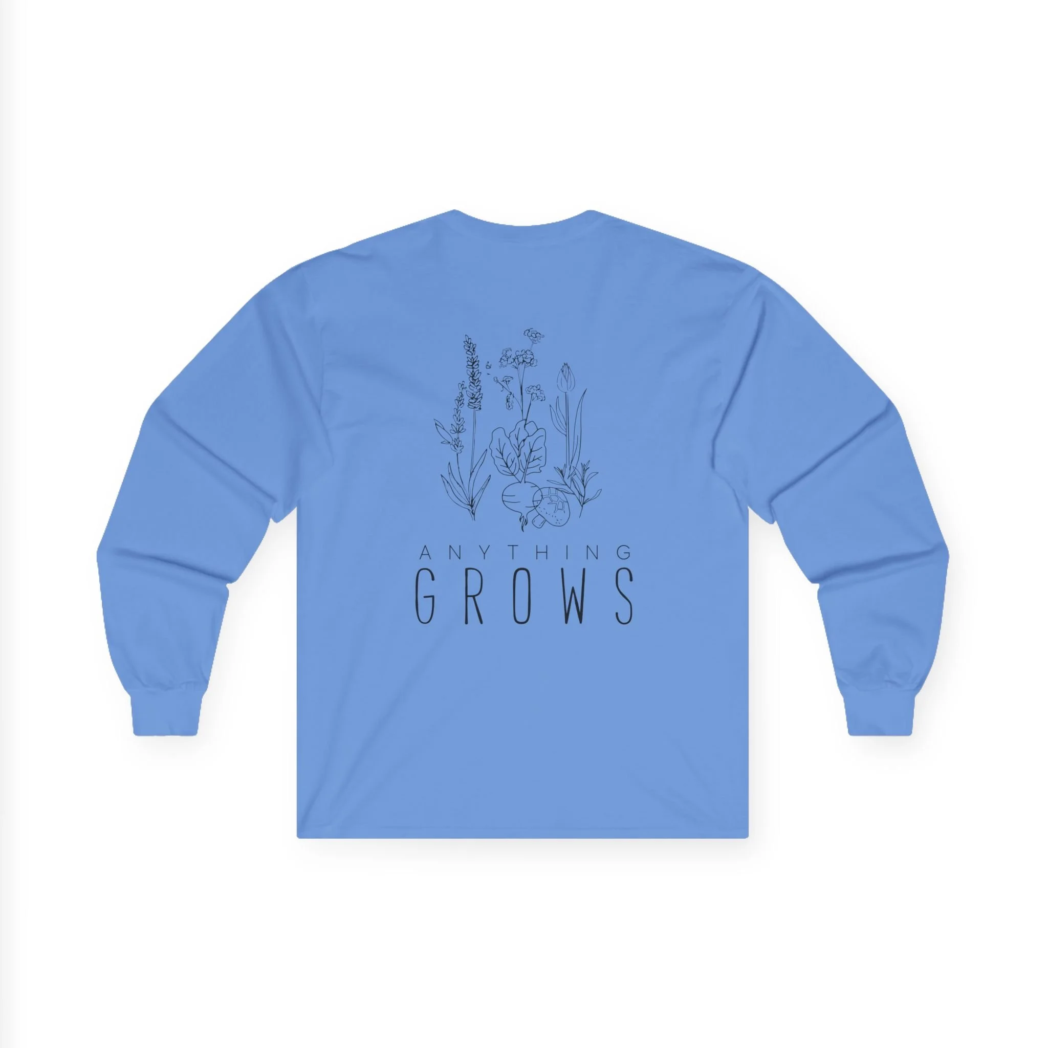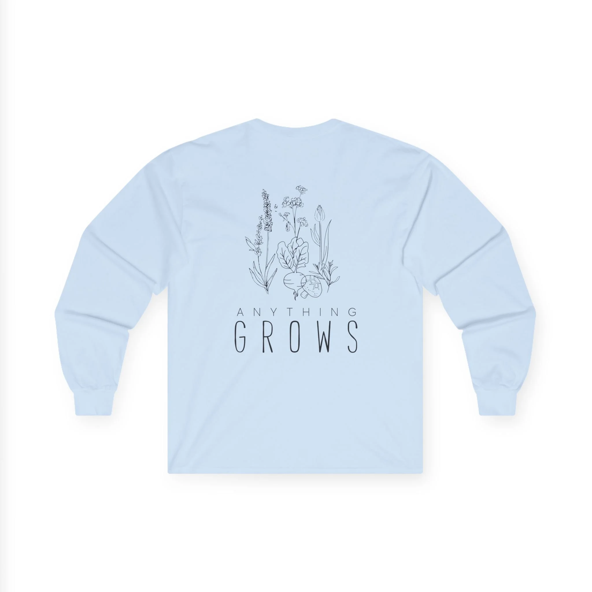 Men's Long sleeve T-Shirt. Wide black letters on the front. Full black logo on the back.