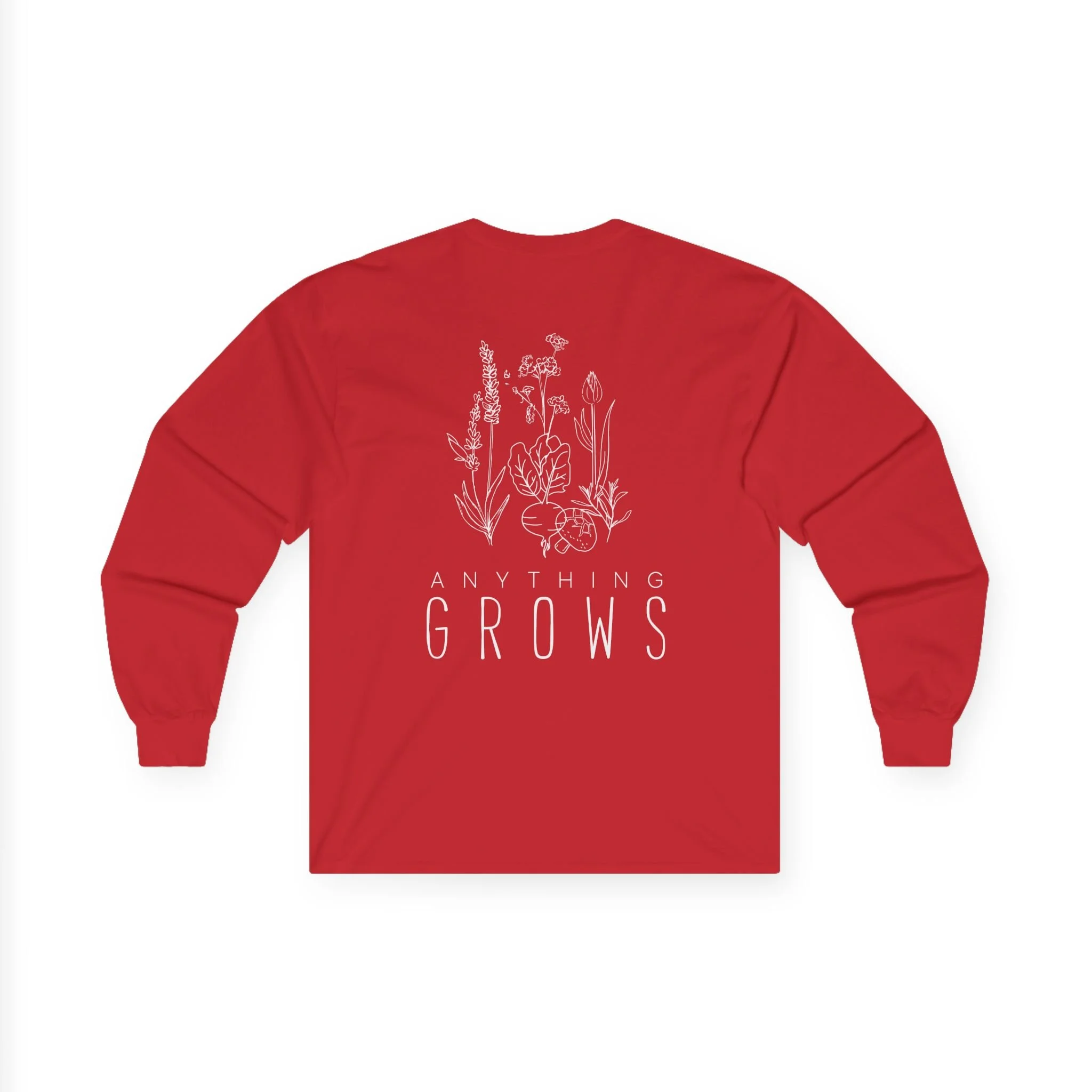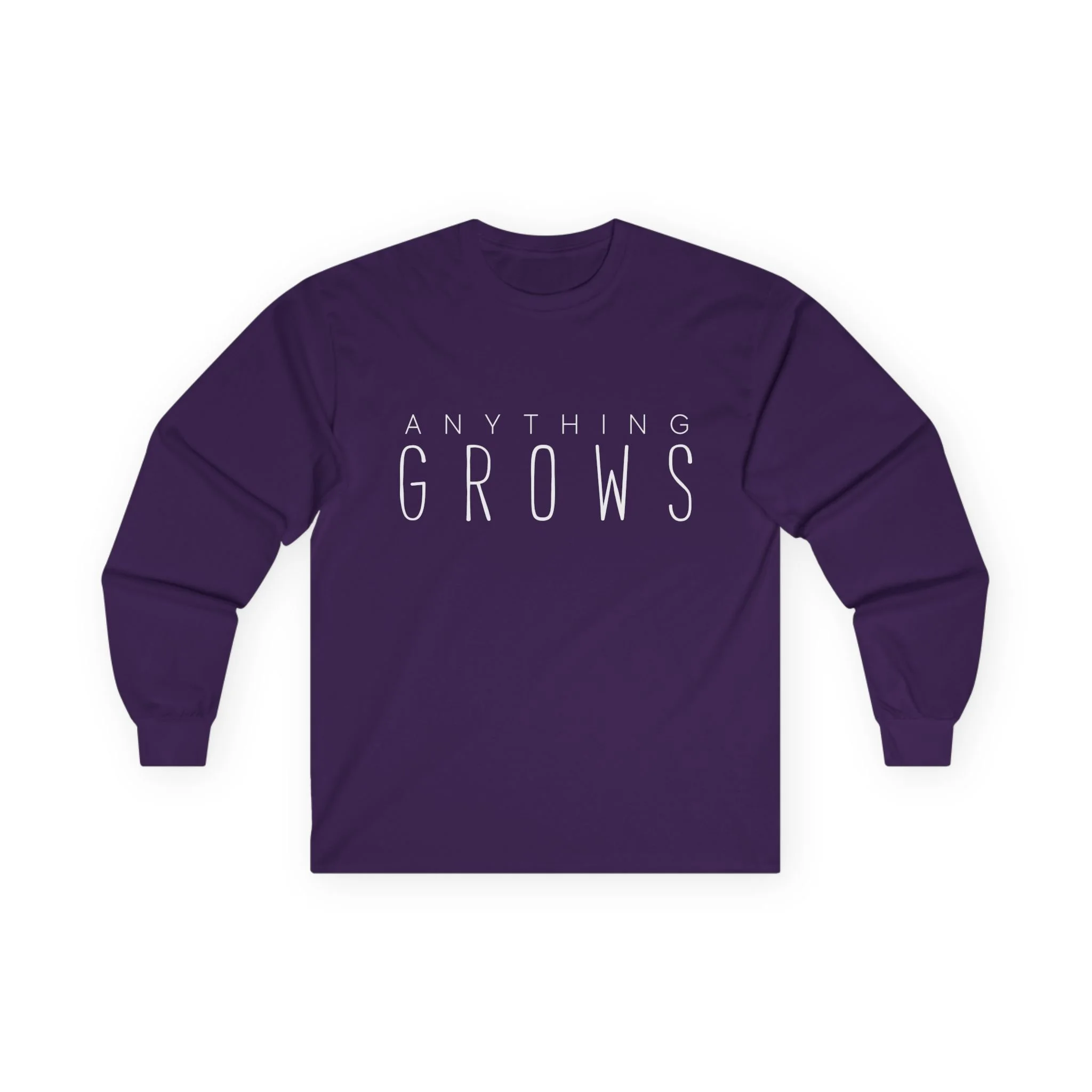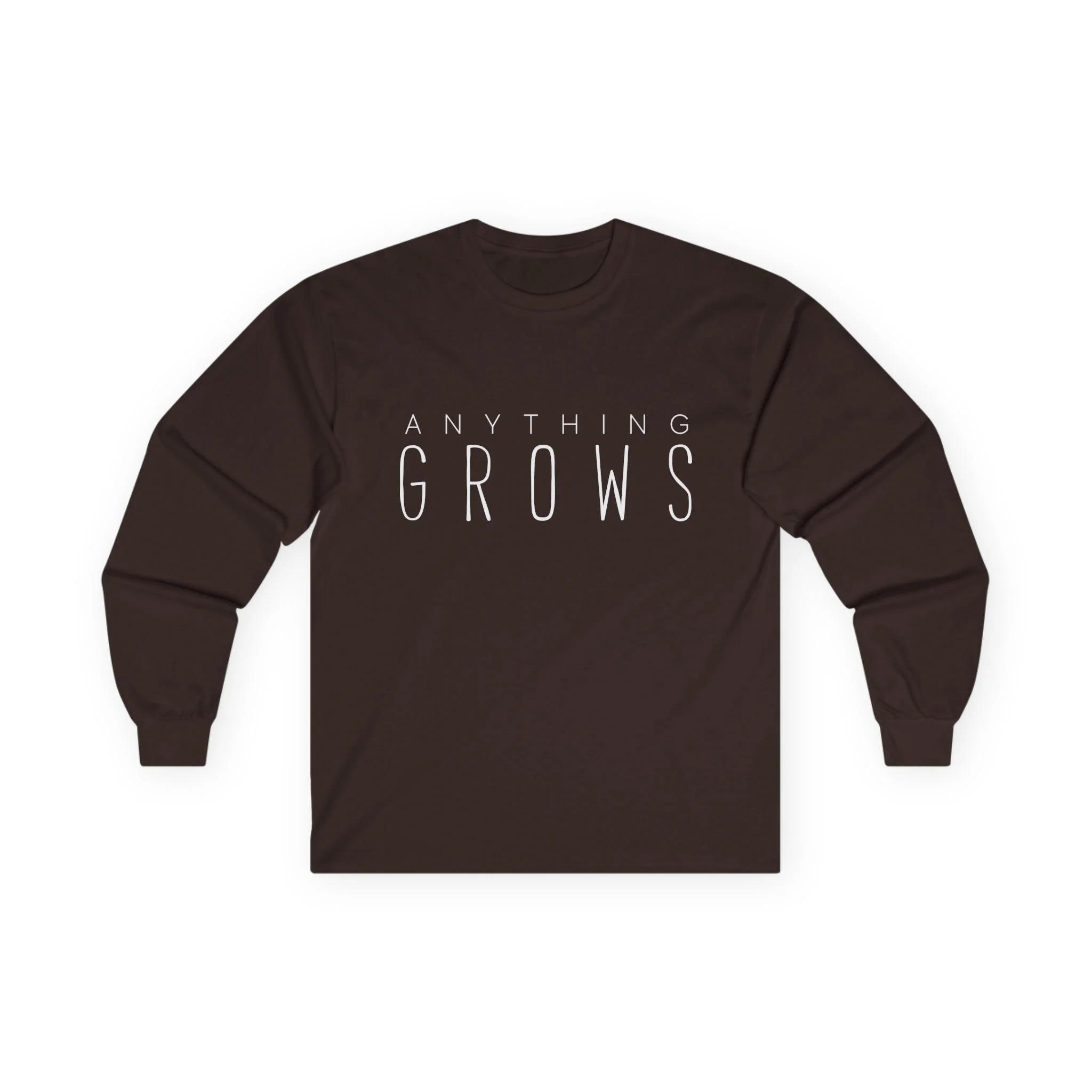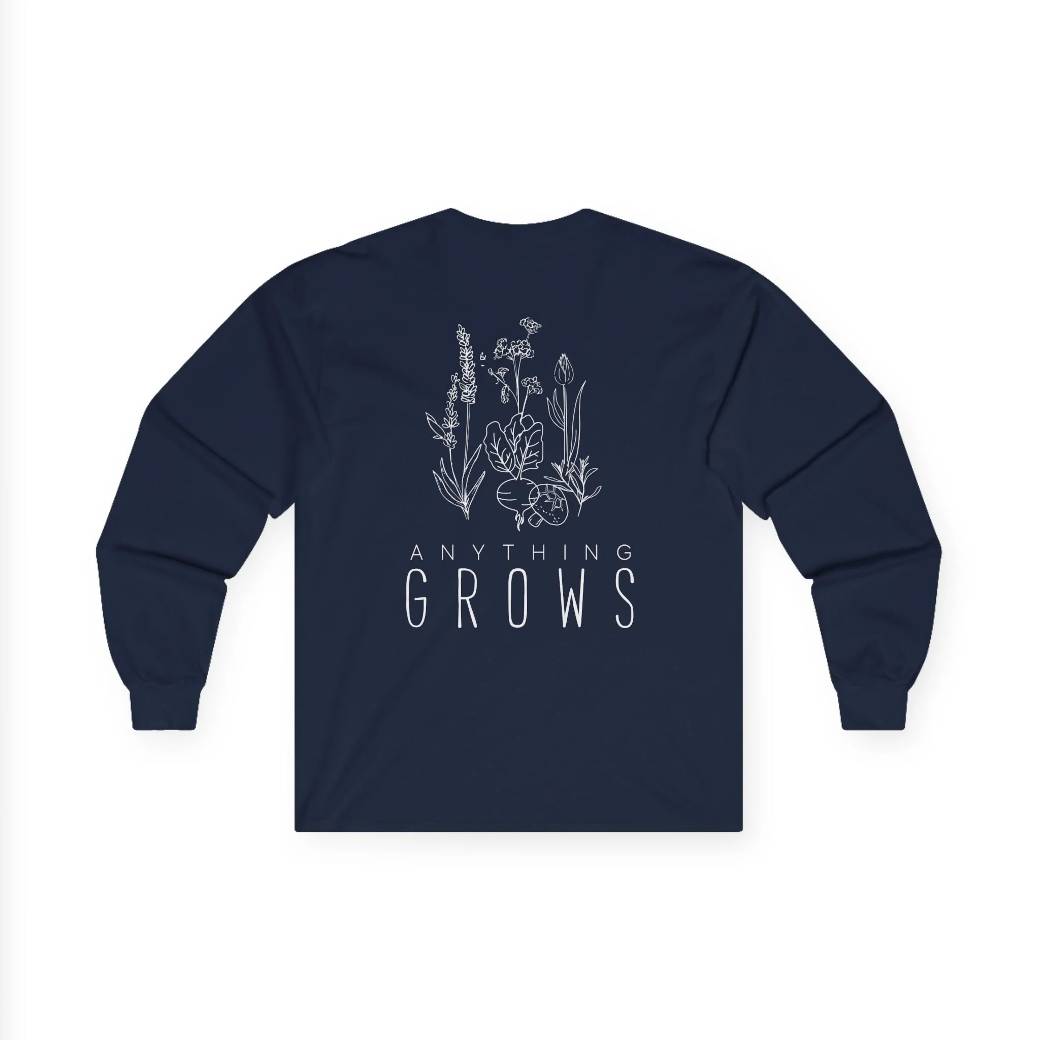 Men's Long sleeve T-Shirt. Wide white letters on the front. Full white logo on the back.