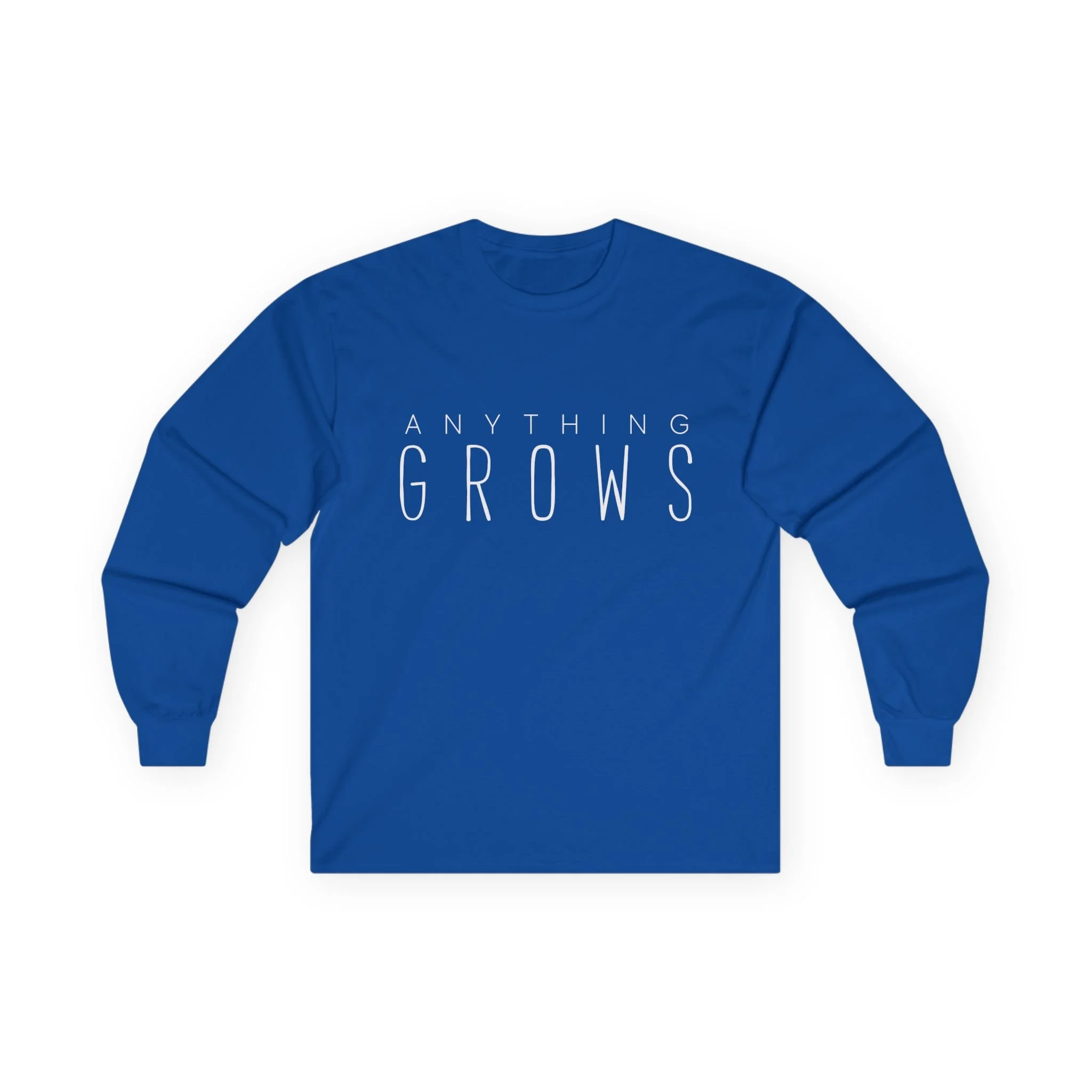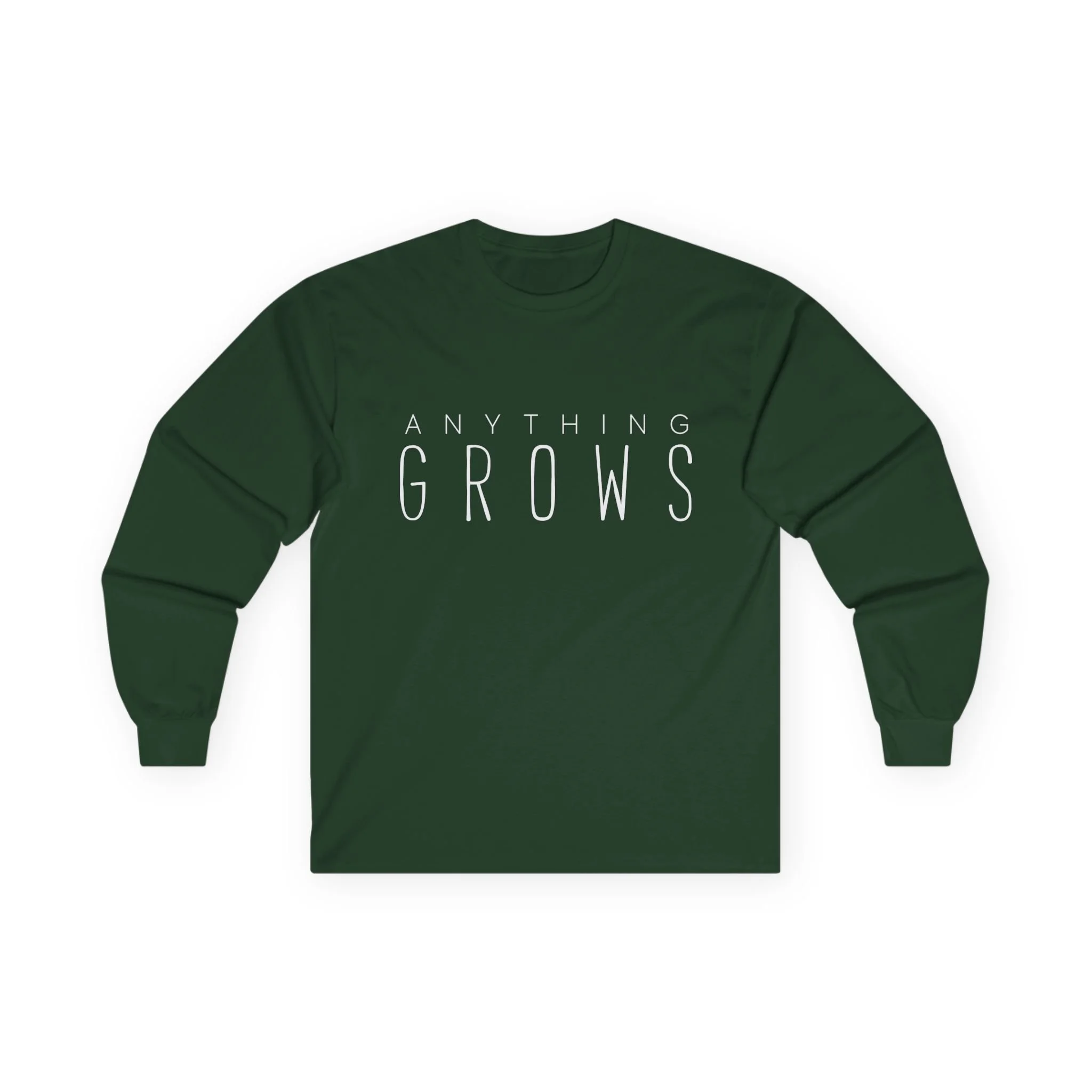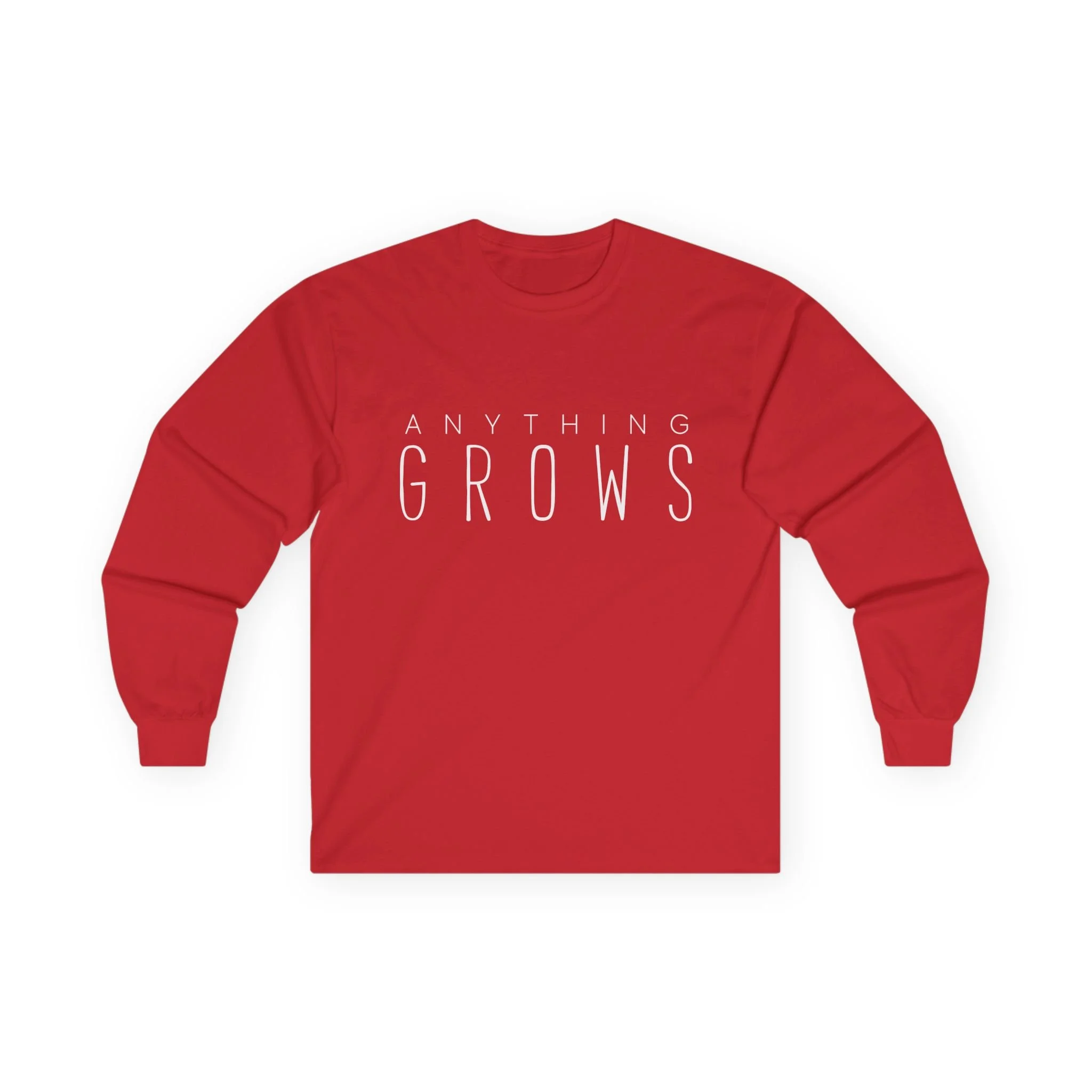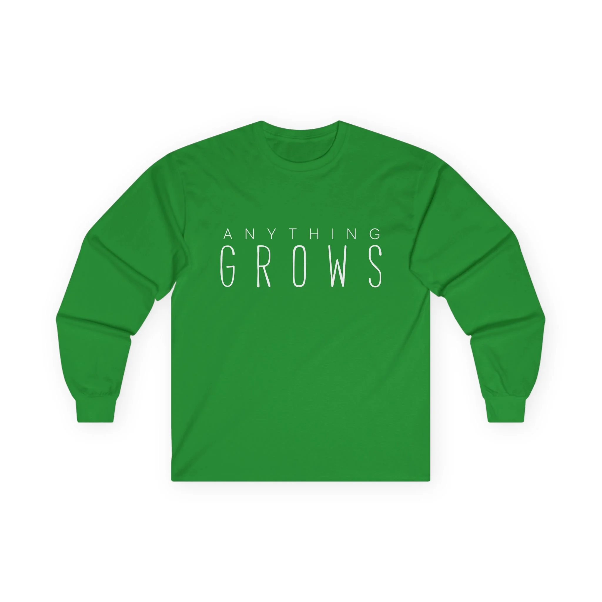 Men's Long sleeve T-Shirt. Wide white letters on the front. Full white logo on the back.