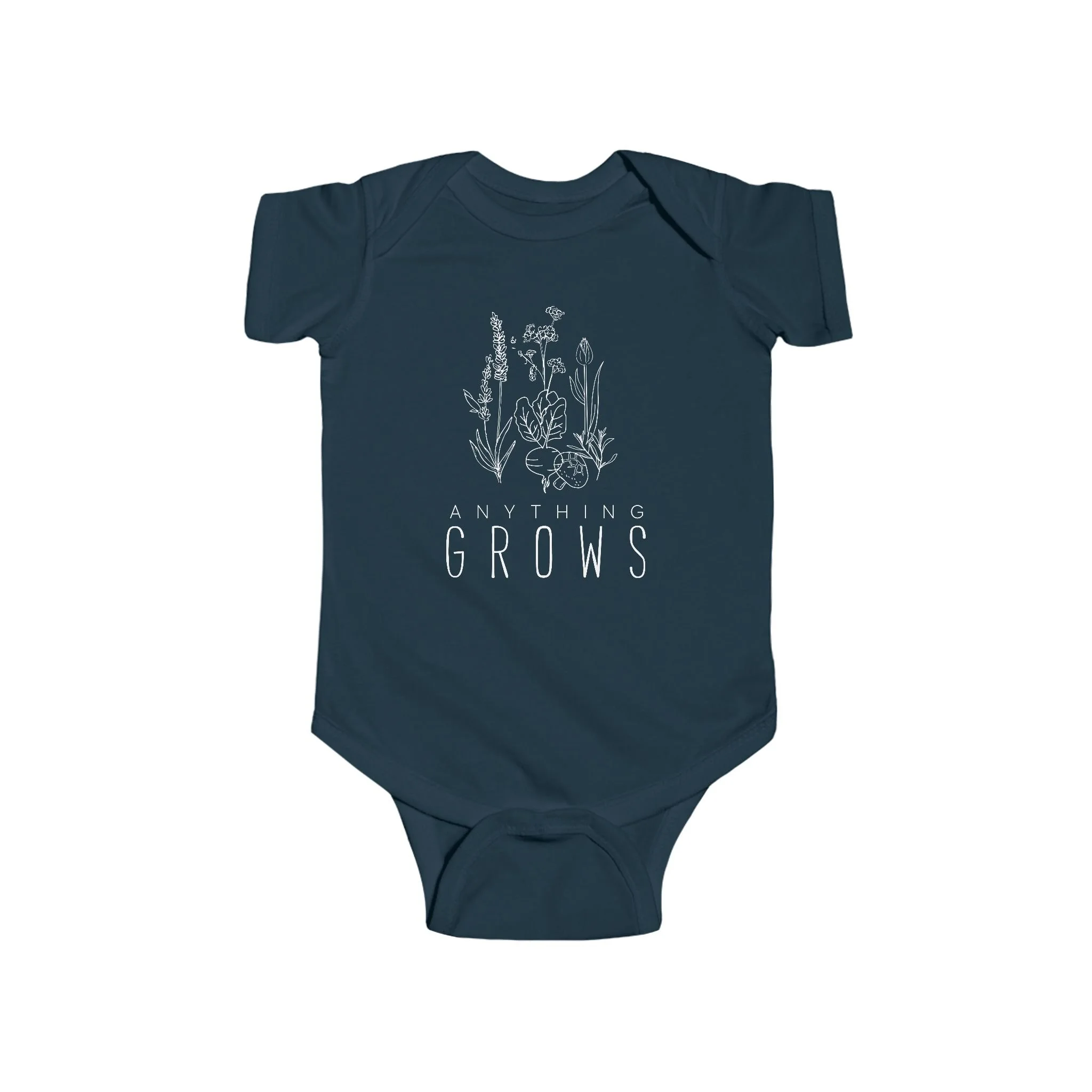 - Matching plastic snap crotch closure for easy diaper changes